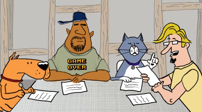 Gary meets with Darius, Katz and Porkrine to discuss news content for their podcast channel.