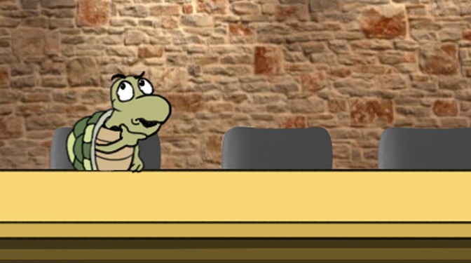 Mr. Turtle holds a meeting with Gary, Darius, Katz and Porkrine.