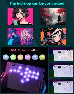 The fight stick does come with a single page of instructions, and you’ll really want to search up a YouTube video or something similar to really get the most out of the web configurator. The instruction page shows information in both English and Japanese. It gives a brief overview on how to do things like change SOCD modes, which is important if you take this to a tournament: leverless sticks in King of Fighters XIV would allow you to do things like block on both sides during a cross-up by holding left and right simultaneously, for example. It also shows you how to change input modes, d-pad, or analog stick emulation modes, and how to cycle the built-in LED lighting setups.