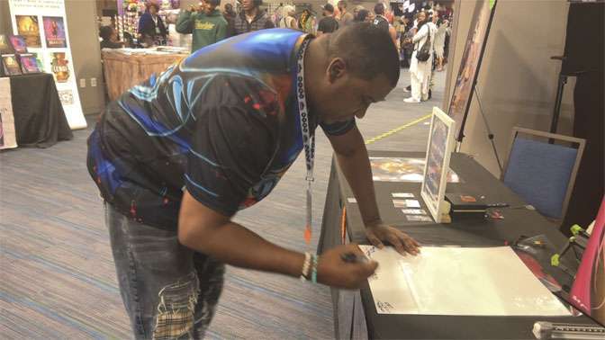 “I love this BlerdCon community. It’s a safe and great place for anybody of any color to come and celebrate whatever you’re into,” said Stephen Jones, visual artist and owner of Art-O-Torium.
