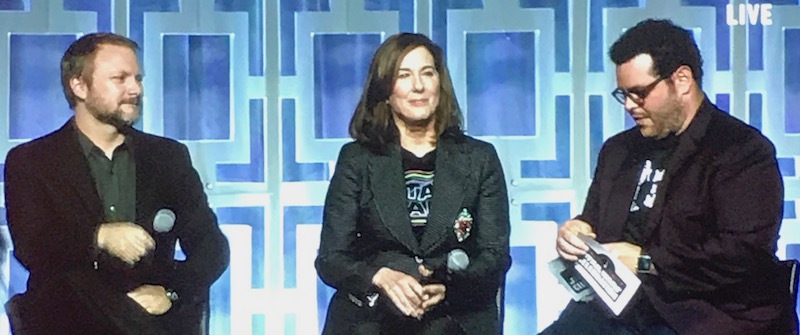Of course what panel is not complete with the great legendary Mark Hamill who just adores his fans. What was asked of him is if he talks in the film. He went on a very long answer about how he saw Rian Johnson as a director he could work with and how the backstory was only a part of the film. Kathleen Kennedy had to remind us that Luke Skywalker is more important to the film then Mark underestimates. We aren’t going to get anything from Mark, he talked a lot but didn’t say anything, and he even said Luke communicates telepathically as a joke. He also loves to just tell us how much we mean to him. In turn Mark Hamill means a lot to the fans.