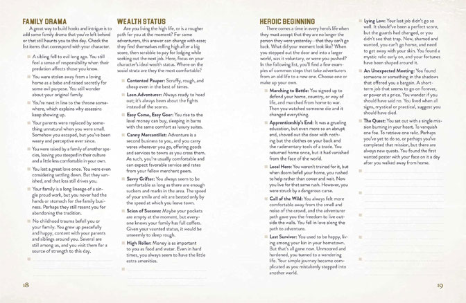 This knowledge does give a good payoff in that this book is consistent in tone and approach. This book shows how you can make and grow your character through a campaign provide logical breakdowns that keeps the various elements of your character in one place that you can write down using that most robust and dependable technology, pen and paper.