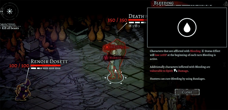 Alder’s Blood is a turn-based strategy game where your group of hunters have to eliminate various monsters in each level. The main mechanic that separates it from other turn-based strategy games is managing your scent. Each hunter will leave a scent that goes downwind and will attract monsters who catch it. The mechanic adds an interesting step to the challenge maps and sets up potential mission-ruining issues.