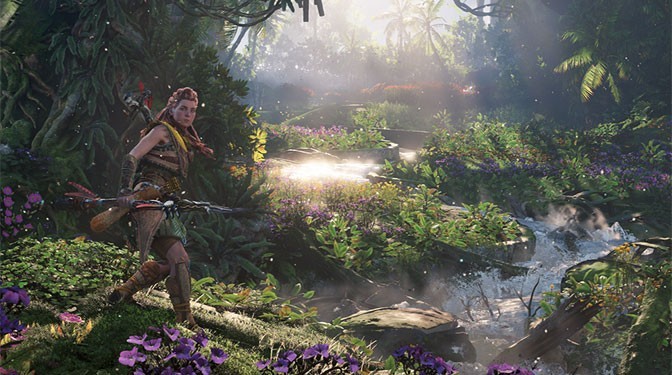 Art: Forbidden West looks amazing running on a PlayStation 5, and if you have a 4K TV then be prepared to be blown away. This is one of the best looking games for the PS5 right now. Everything is incredibly detailed, from the facial models of characters having age lines to the addition of environmentally appropriate effects on characters like the beads of sweat on Aloy and others when traveling through a desert. I enjoyed the visuals of Forbidden West immensely, so much that I really enjoyed just wandering around the world looking at all the various sights.