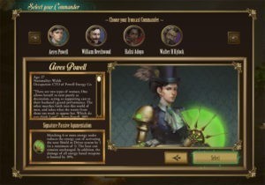 Set in Victorian England, your Commanders are all dialogue-interchangeable portraits who speak in mannerly prose to HQ at the start of every mission. Due to the fact that missions are random, a lot of the dialogue is actually unimportant, and the only missions with dialogue that matter (from what I can tell) are the bosses and the mission immediately following the first boss.