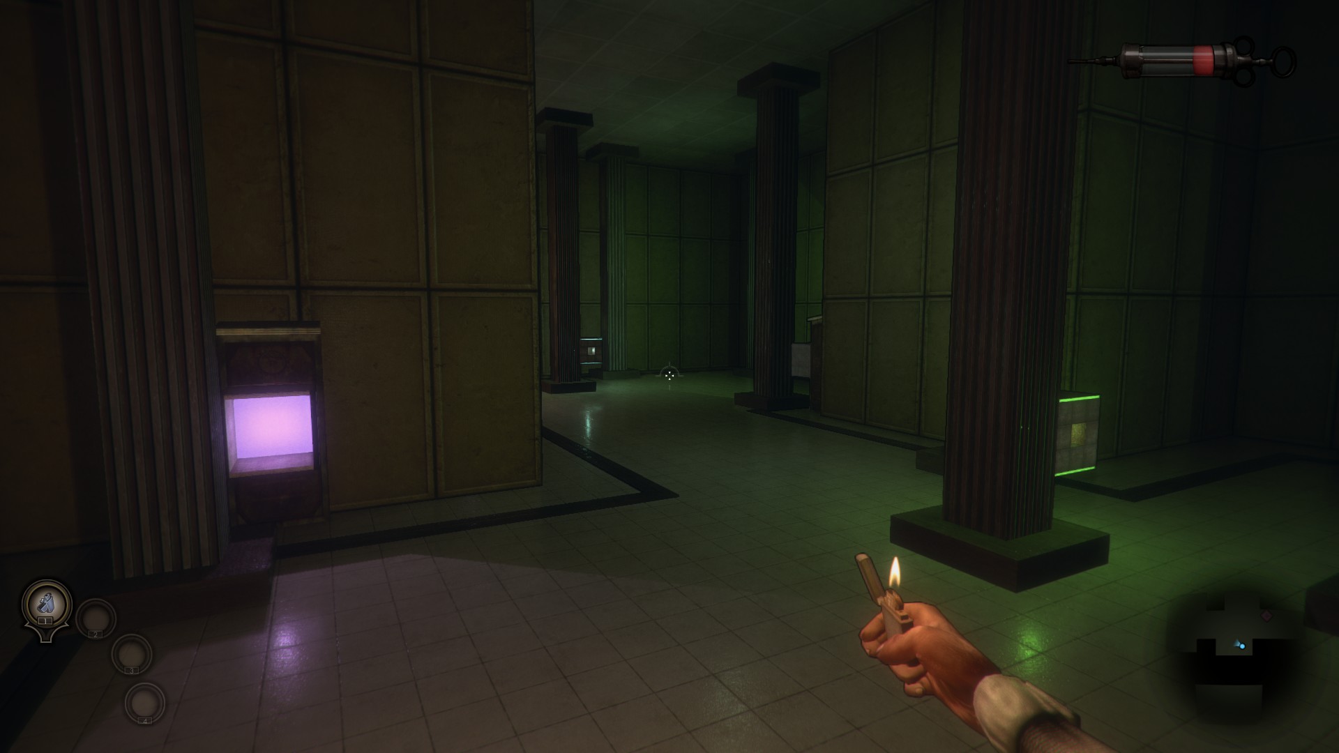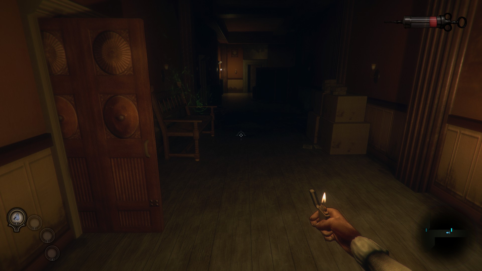One noticeable thing when loading up the game for the first time is a red fluid-filled syringe in the upper right corner. It’s your health meter that can be replenished by using crafted bandages.